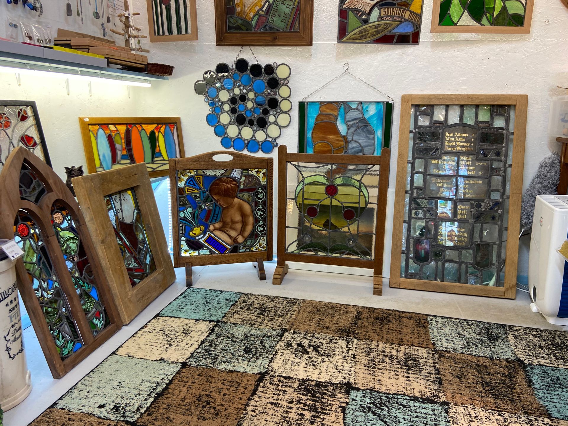 In addition to Glass sculptures and window hanging pieces Lucian Stained Glass offer commissions for internal and external windows, so come along to Tramagenna Gallery for a consultation and see what we can offer, we also offer repairs and restoration for any old or damaged panels.